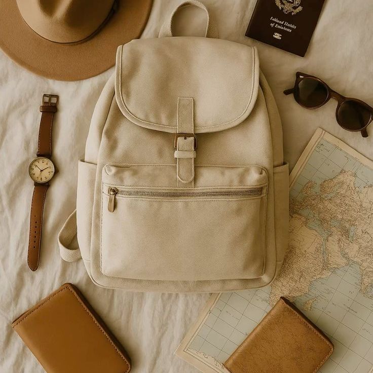 The everyday grab-and-go kit: passport, wallet, sanitizer, lip balm, tissues, and those small lifesavers you’ll thank yourself for having.